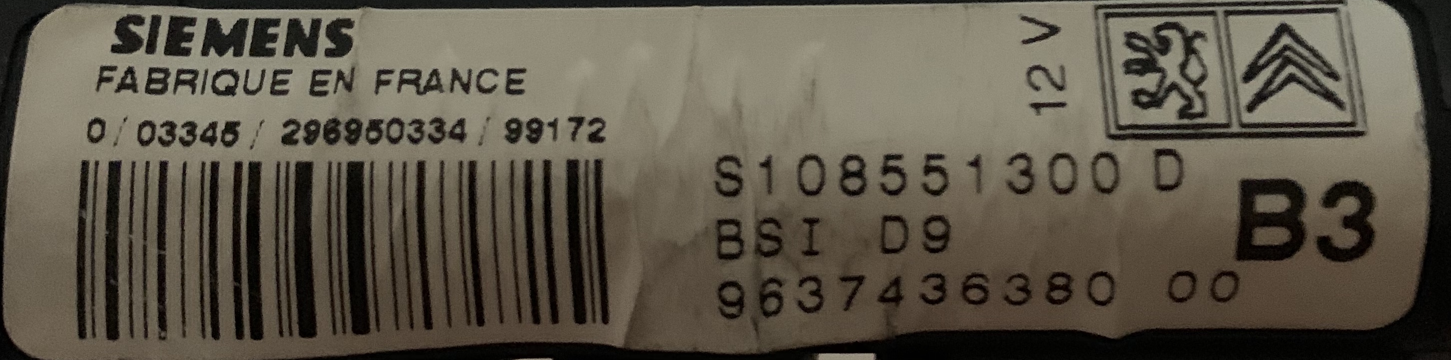 S108551100B 9639066380 BSI PEUGEOT 406